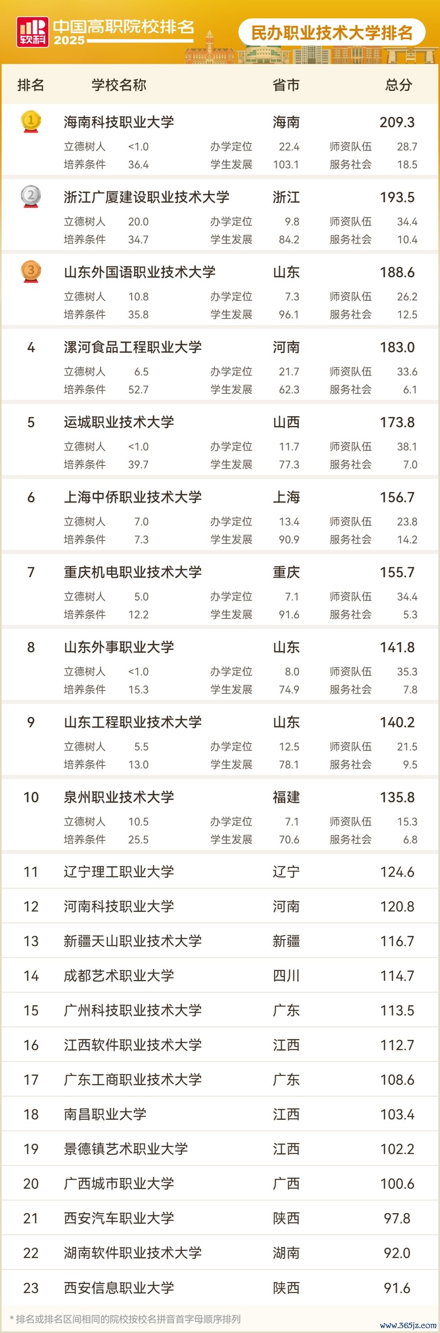 在本科层次的职业技术大学排名中,深圳职业技术大学独占鳌头,海南科技职业大学则在民办职本排名中居于首位。目前,上海唯一一所本科层次职业大学——上海中侨职业技术大学综合实力位居全国前列,排在民办职本榜单第6名。