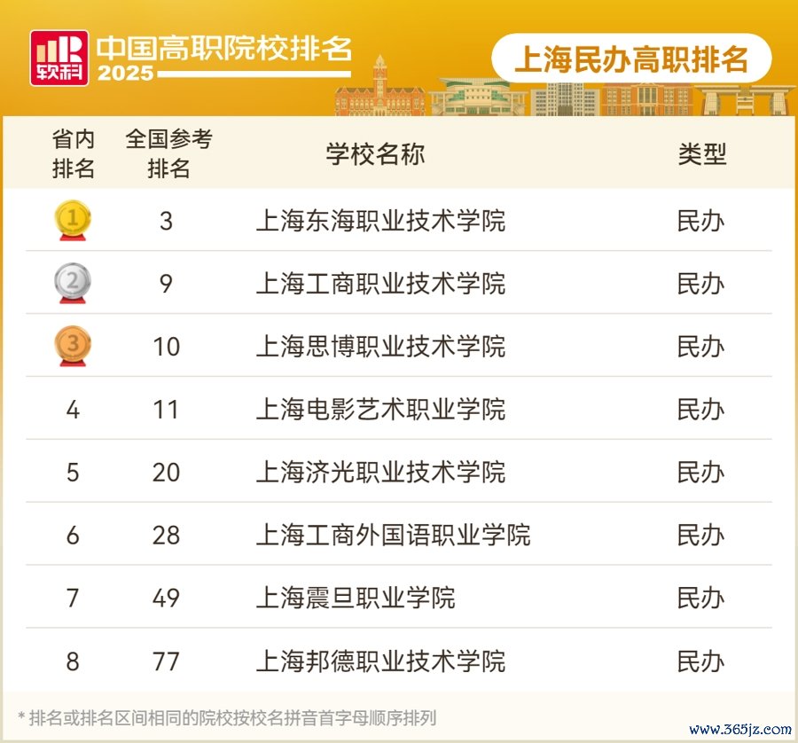 民办高职专科院校排名中,上海同样表现亮眼,8所院校上榜,其中3所院校入围全国十强——上海东海职业技术学院跻身三甲、位列第三,上海工商职业技术学院位列第9名,上海思博职业技术学院位列第10名。